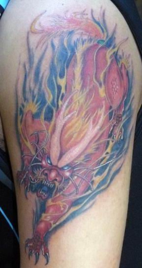背部霸气的火麒麟纹身图片_麒麟纹身图案大全_纹身图吧