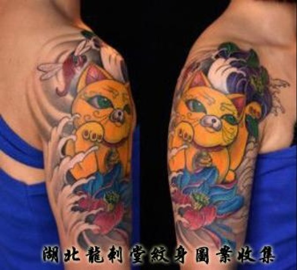 大臂日式纹身招财猫纹身图片_日式纹身图案大全_纹身图吧