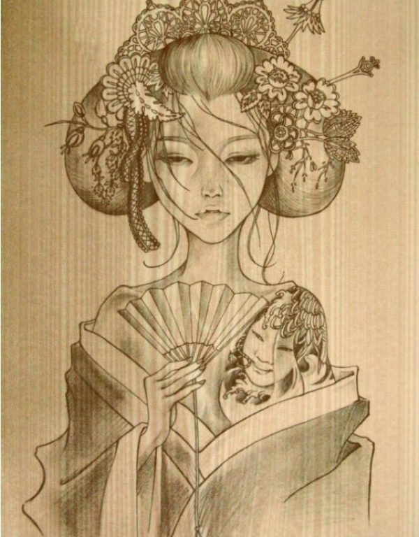 日本艺妓图片图案_日式纹身图案大全_纹身图吧