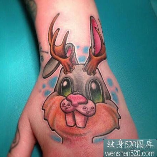 手背上的龅牙兔刺青_手臂纹身图案大全_纹身图吧