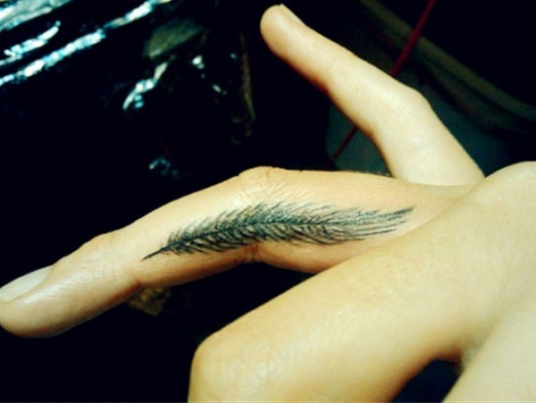 女性手指黑色羽毛漂亮意境刺青_手臂纹身图案大全_纹身图吧
