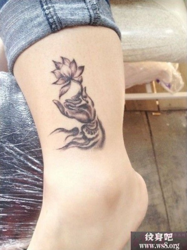 手指拈花创意腿肚纹身图案_手臂纹身图案大全_纹身图吧