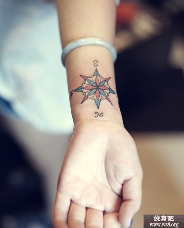 手腕彩色指南针刺青图案_手臂纹身图案大全_纹身图吧