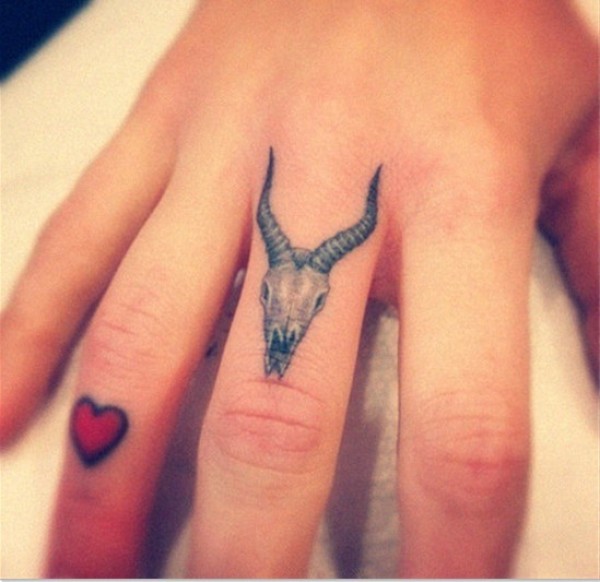 男人手指独特羊头+彩色心创意刺青_手臂纹身图案大全_纹身图吧