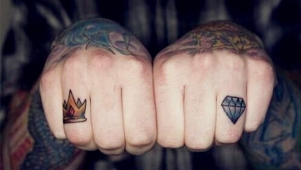 男人手指彩色皇冠钻石独特刺青_手臂纹身图案大全_纹身图吧