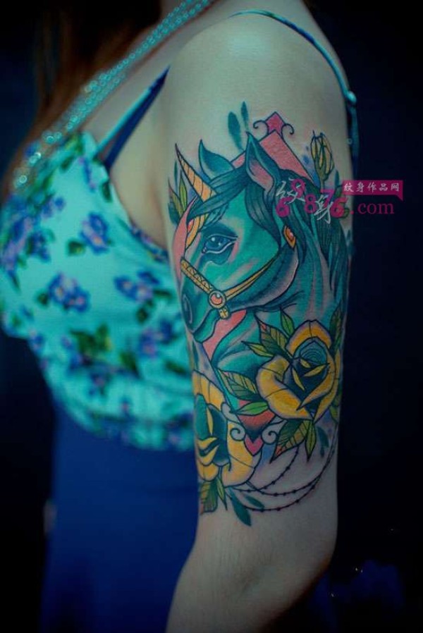 彩色独角兽欧美大臂纹身_手臂纹身图案大全_纹身图吧