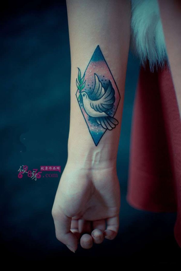 创意橄榄枝小鸟高清手臂纹身_手臂纹身图案大全_纹身图吧