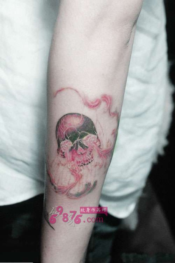 梦幻粉色骷髅手臂纹身_手臂纹身图案大全_纹身图吧