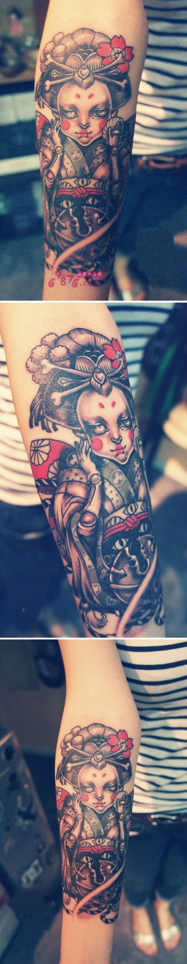 粉黛可爱小艺妓手臂纹身_手臂纹身图案大全_纹身图吧