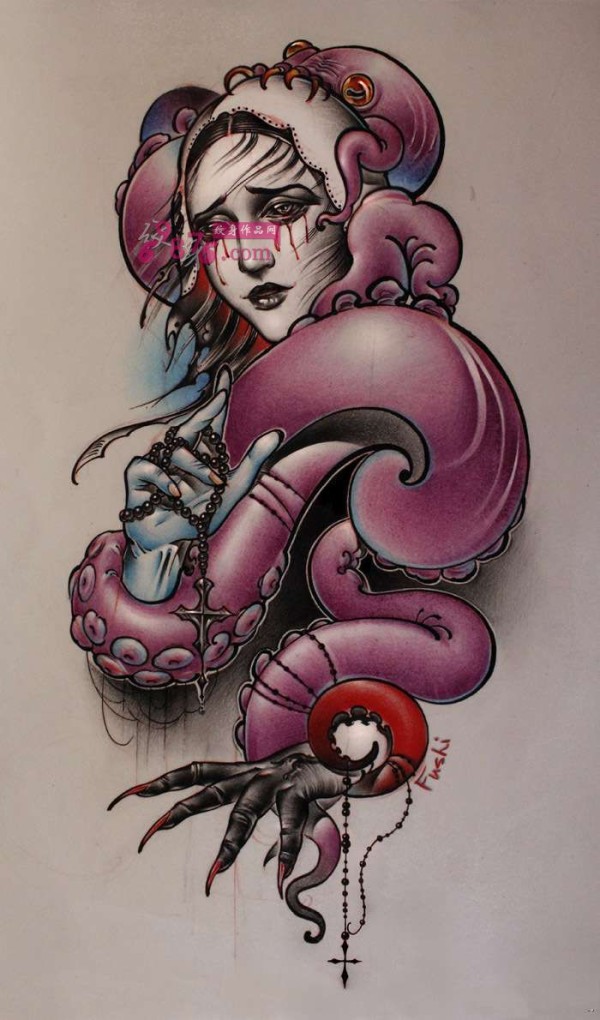 复古吴克与圣母创意纹身手稿_手臂纹身图案大全_纹身图吧