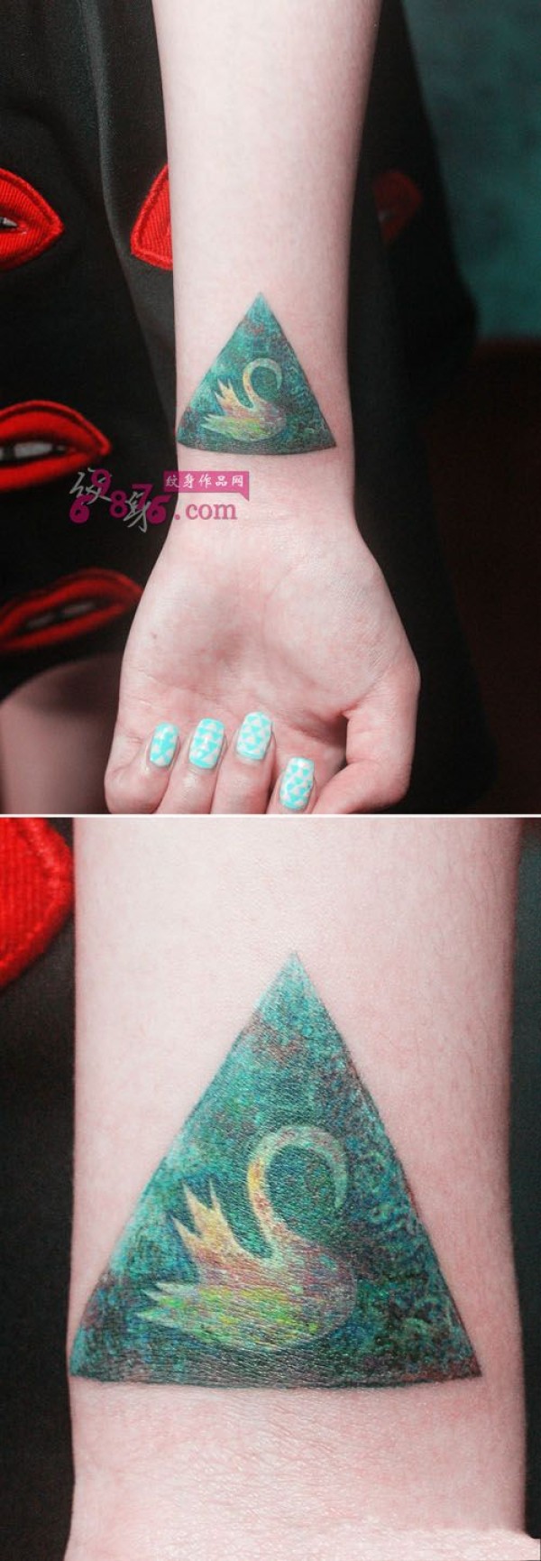 个性三角形天鹅手腕纹身_手臂纹身图案大全_纹身图吧
