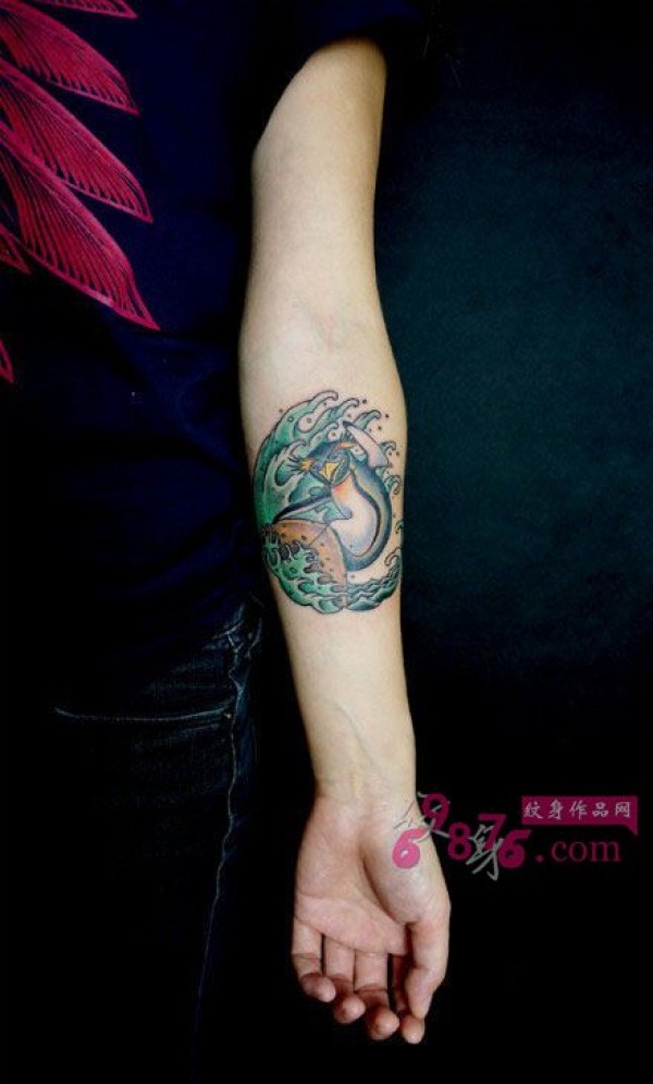 冲浪企鹅创意手臂纹身_手臂纹身图案大全_纹身图吧