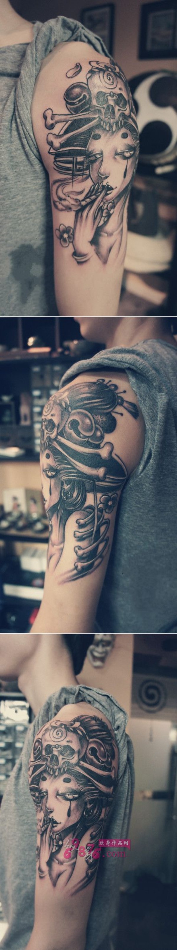 抽烟艺妓个性花臂纹身_手臂纹身图案大全_纹身图吧