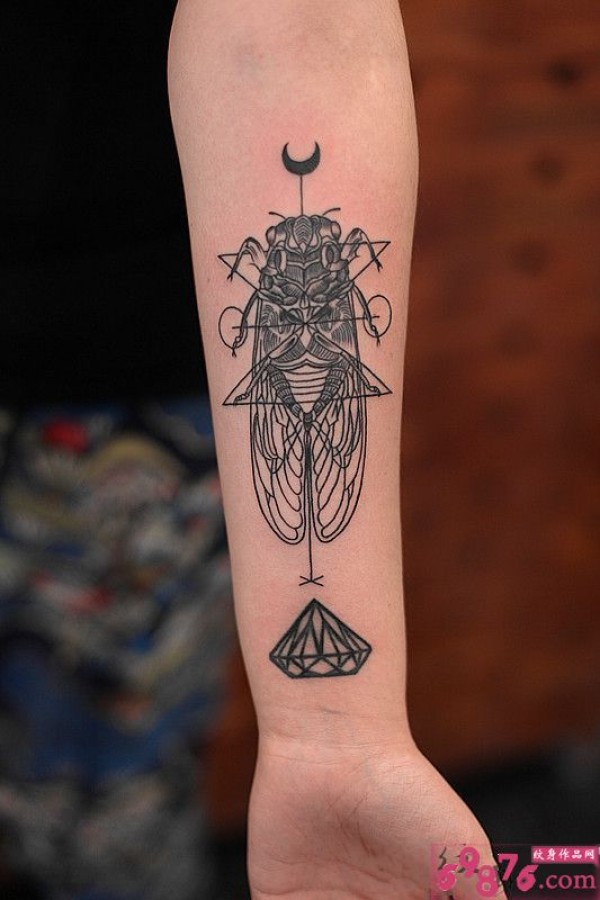 创意钻石与蝉手臂纹身_手臂纹身图案大全_纹身图吧
