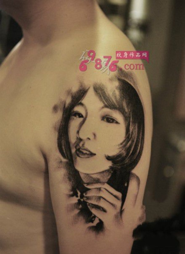 女友肖像个性手臂纹身_手臂纹身图案大全_纹身图吧