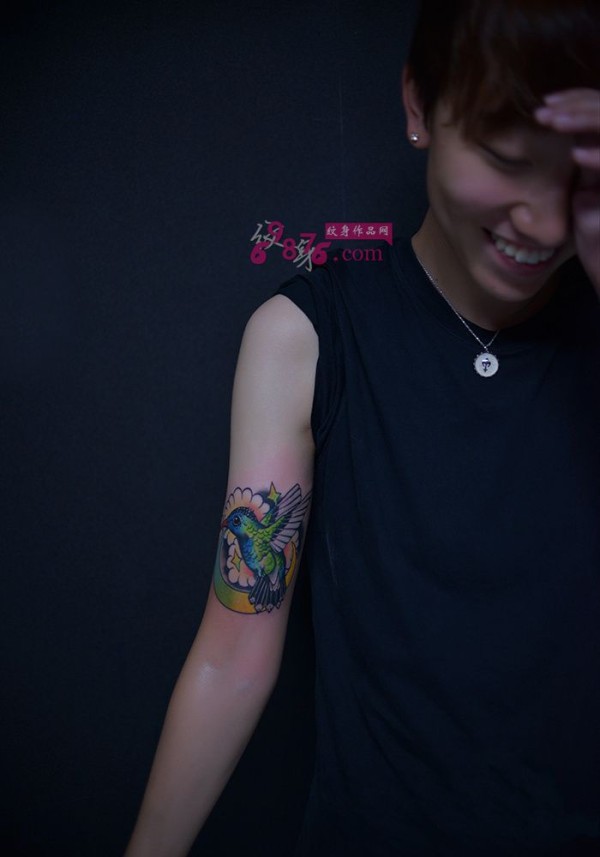 彩色小蜂鸟时尚手臂纹身_手臂纹身图案大全_纹身图吧