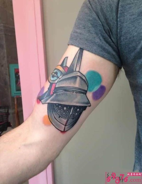 个性头盔手臂纹身_手臂纹身图案大全_纹身图吧