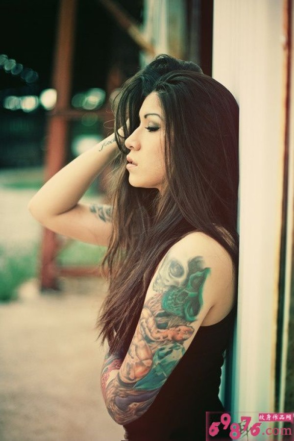 美女花臂个性纹身_手臂纹身图案大全_纹身图吧