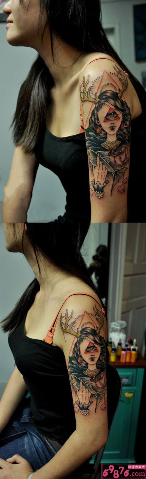 创意三角眼麋鹿女手臂纹身_手臂纹身图案大全_纹身图吧
