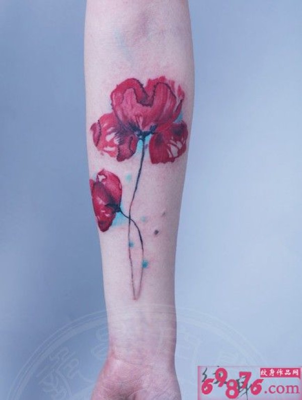 娇艳罂粟花手臂纹身_手臂纹身图案大全_纹身图吧