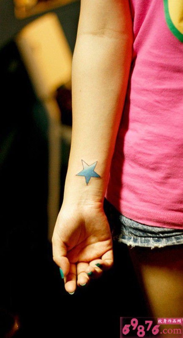 清新蓝色小星星手腕纹身_手臂纹身图案大全_纹身图吧