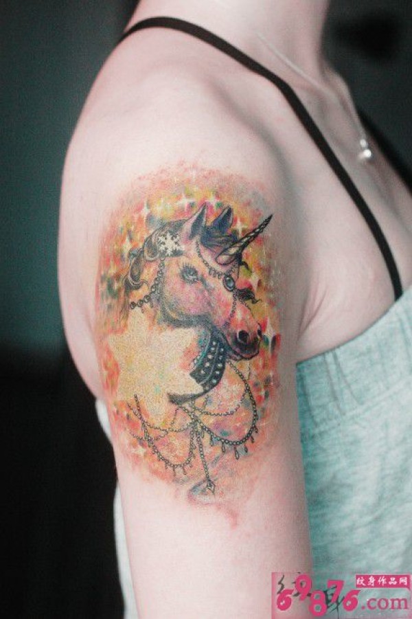 唯美独角兽手臂纹身_手臂纹身图案大全_纹身图吧