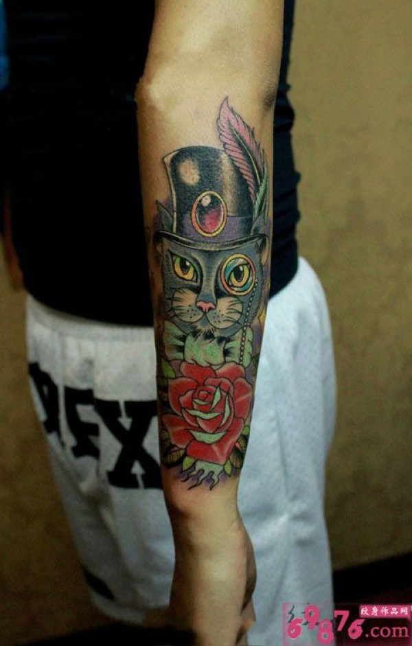 欧美风绅士猫手臂纹身_手臂纹身图案大全_纹身图吧