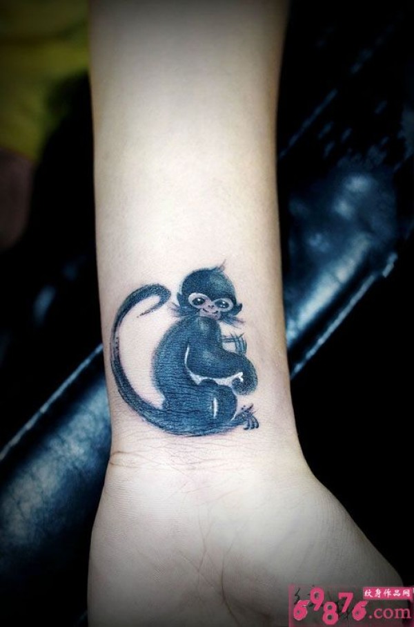 可爱水墨猴子手腕纹身_手臂纹身图案大全_纹身图吧