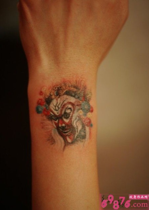 手背上一款彩色的死亡女郎纹身作品_手臂纹身图案大全_纹身图吧