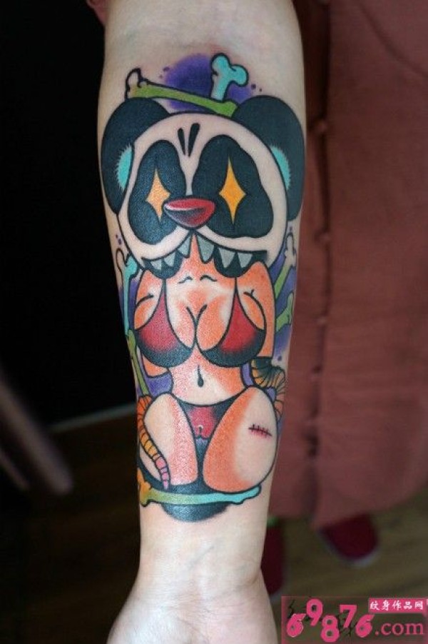 创意熊猫美女手臂纹身_手臂纹身图案大全_纹身图吧