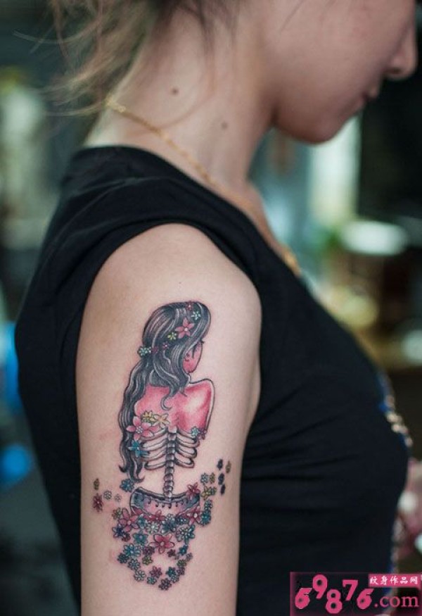 创意骷髅美女头像手臂纹身_手臂纹身图案大全_纹身图吧