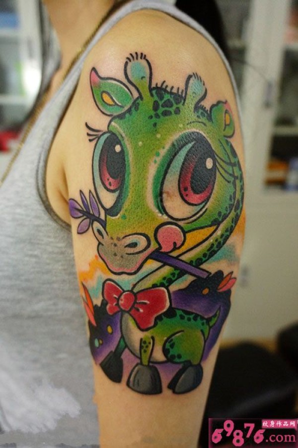 绿色萌小鹿手臂纹身_手臂纹身图案大全_纹身图吧