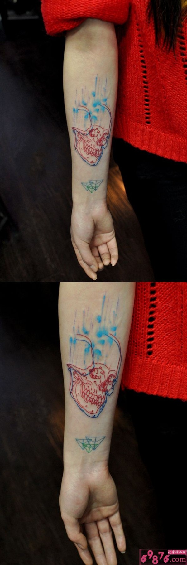 设计感电音骷髅手臂纹身_手臂纹身图案大全_纹身图吧