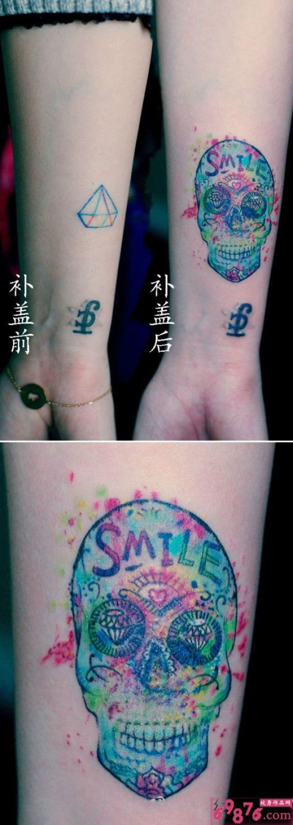 糖果色骷髅创意手臂纹身_手臂纹身图案大全_纹身图吧