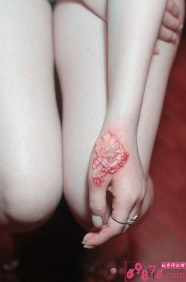 粉色小花朵虎口遮疤痕纹身_手臂纹身图案大全_纹身图吧