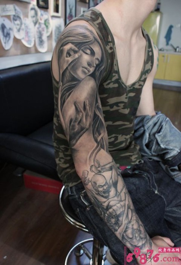美女头像花臂男人纹身_手臂纹身图案大全_纹身图吧