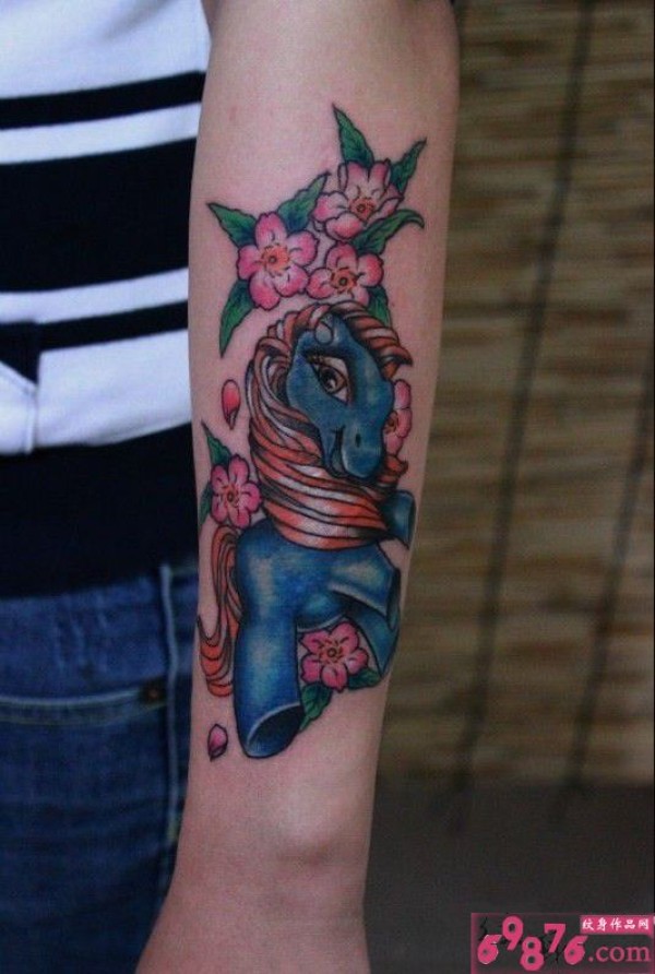 樱花小马时尚手臂纹身_手臂纹身图案大全_纹身图吧