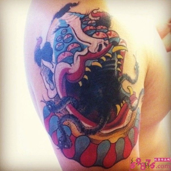 大臂吞食黑图腾个性纹身_手臂纹身图案大全_纹身图吧