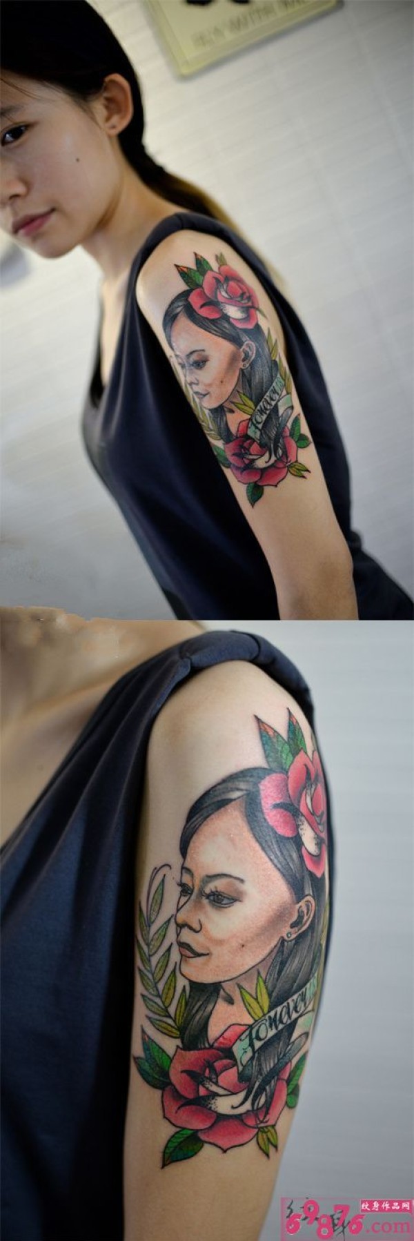 美女手臂肖像个性纹身_手臂纹身图案大全_纹身图吧