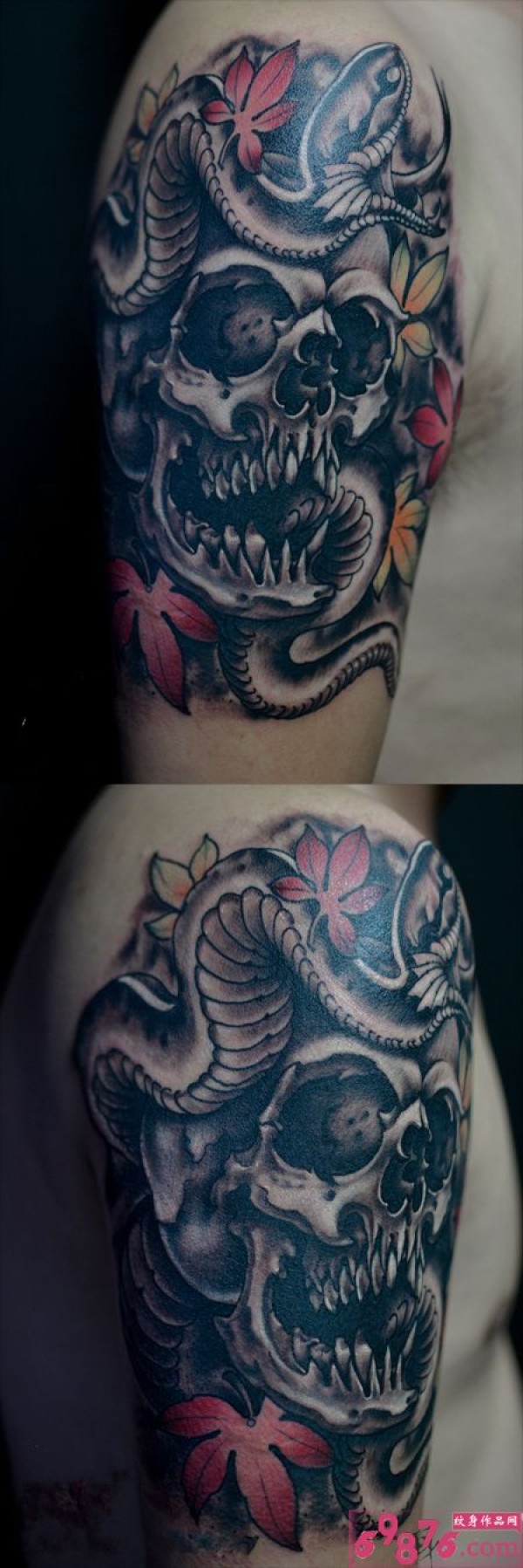 大臂眼镜蛇骷髅欧美纹身_手臂纹身图案大全_纹身图吧