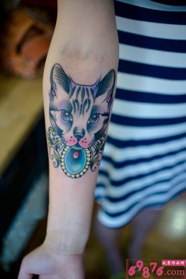 可爱猫咪头像小臂纹身_手臂纹身图案大全_纹身图吧
