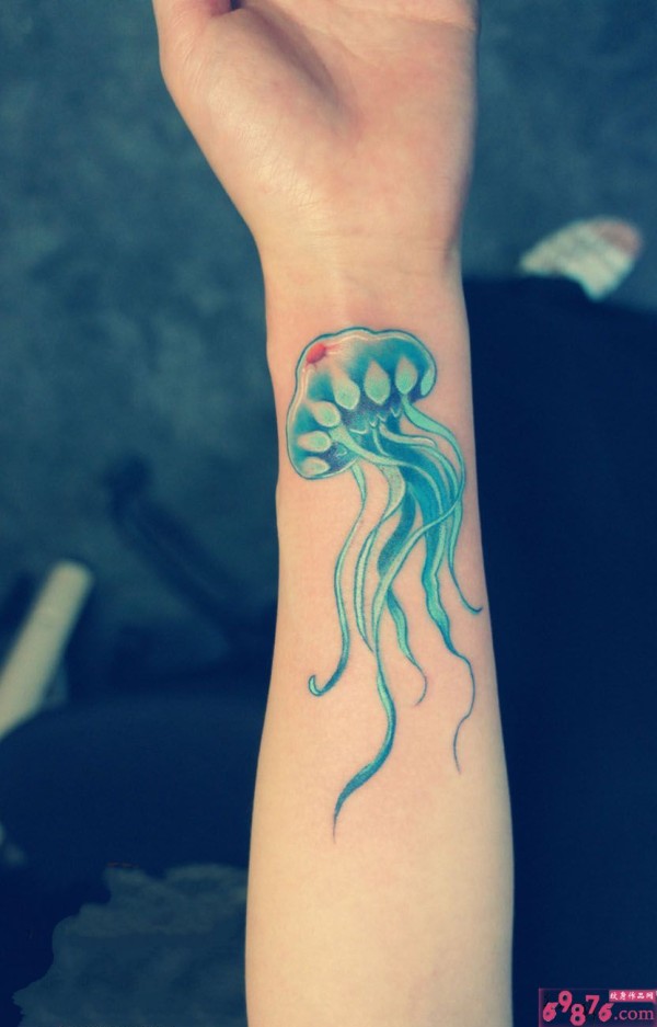 蓝色可爱小水母纹身图片_手臂纹身图案大全_纹身图吧