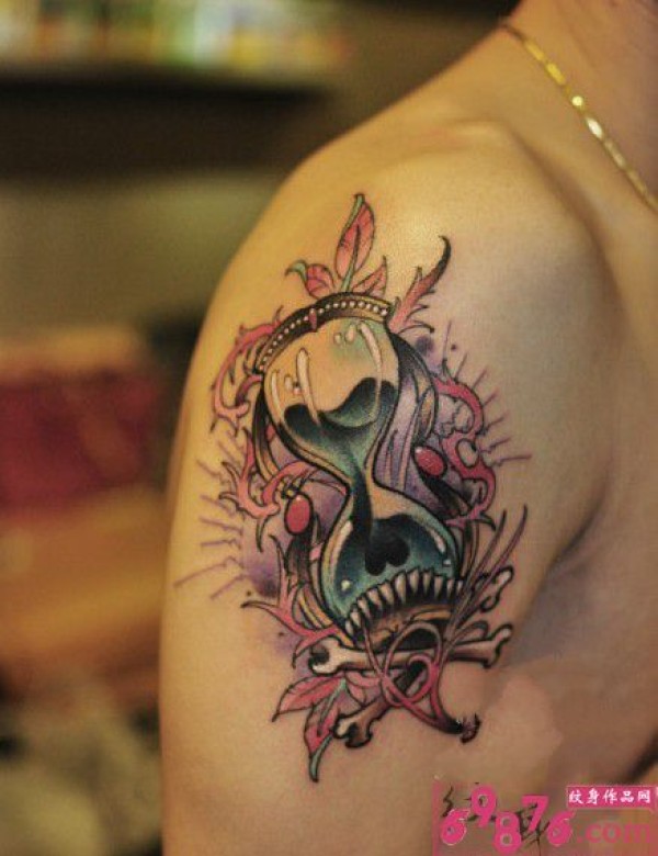 欧美沙漏花藤大臂纹身_手臂纹身图案大全_纹身图吧