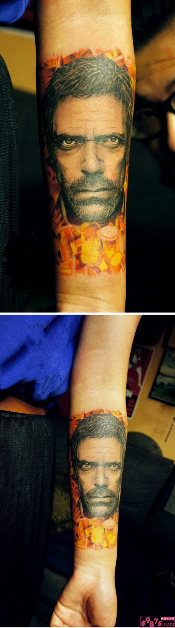 女子手臂人物素描头像刺青_手臂纹身图案大全_纹身图吧