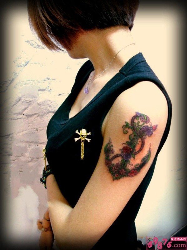 花藤船锚大臂创意刺青_手臂纹身图案大全_纹身图吧