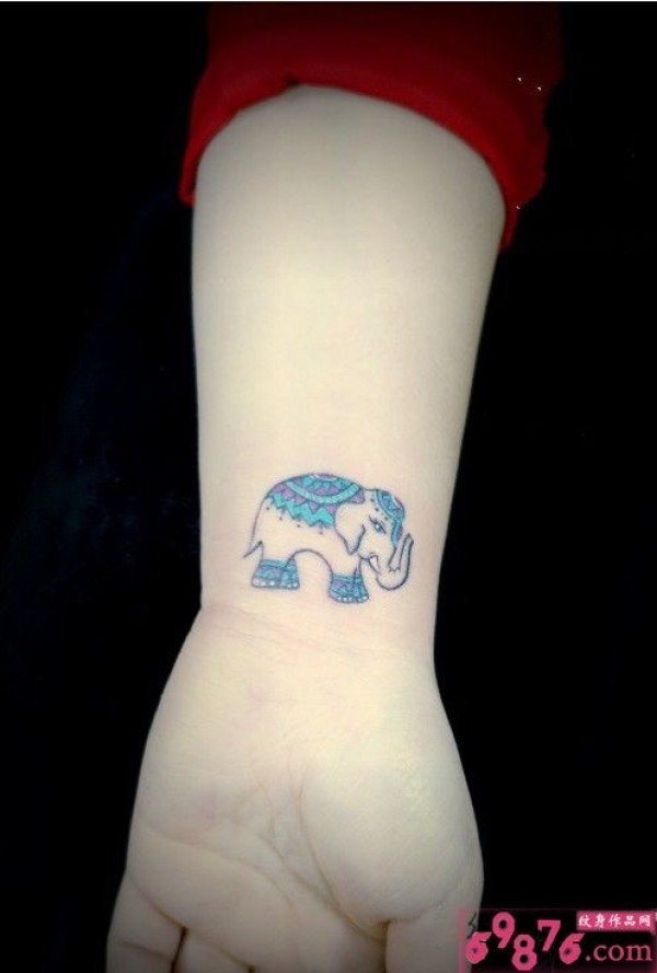 手腕可爱小彩象刺青_手臂纹身图案大全_纹身图吧