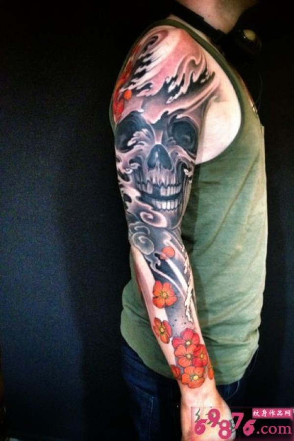 欧美骷髅花臂纹身图_手臂纹身图案大全_纹身图吧
