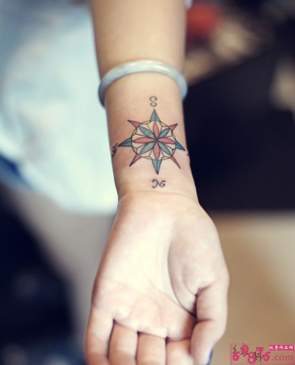 手腕彩色指南针刺青_手臂纹身图案大全_纹身图吧