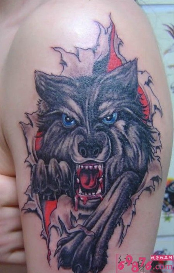 手臂滴血狼头纹身图案_手臂纹身图案大全_纹身图吧