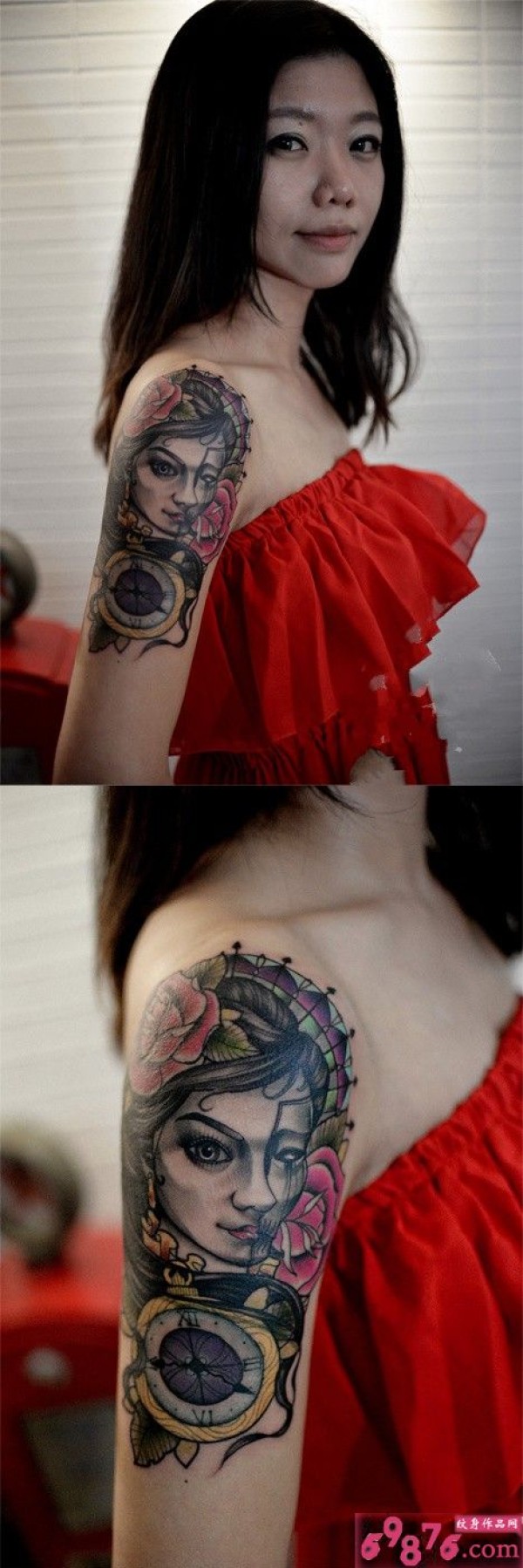 手臂美女与指南针_手臂纹身图案大全_纹身图吧